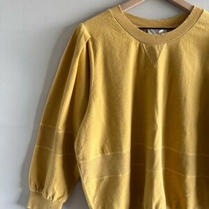 LoveShackFancy pullover, puff sleeve sweater, romantic knit sweater, mustard yellow top, feminine cozy sweater, chic layering pullover, stylish cotton blend sweater, elevated everyday style, statement sleeve knit, LoveShackFancy knitwear, romantic boho chic, versatile fall sweater, timeless puff sleeve look, cozy feminine vibe, modern romantic pullover, stylish weekend sweater, layered feminine outfit, chic casual sweater, vintage-inspired knit, relaxed yet polished sweater