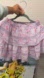 Charming lilac skirt with floral patterns. Features tiered design and delicate lace trim. Ideal for adding a feminine touch.