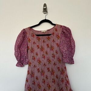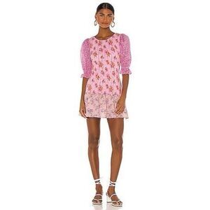 LoveShackFancy Luppa Dress Exploded Pink Mini Dress Size Smocked Peasant