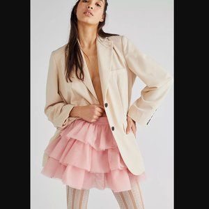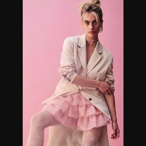 Features: Tiered tulle design, zip closure, raw-edge detailing