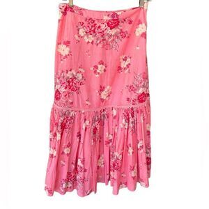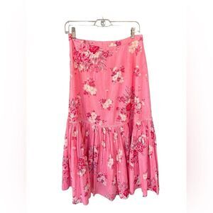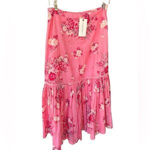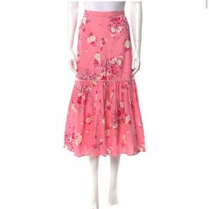 LoveShackFancy Mateo mellow Pink Floral Midi Skirt NWT