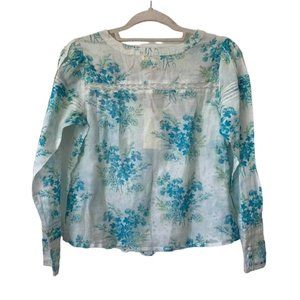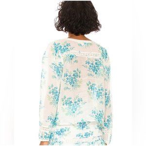 LoveShackFancy Mauro Blouse Button Down Floral Print Magic Turquoise XS