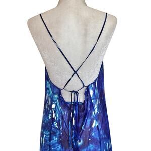 LoveShackFancy Maxi Fairy Slip Dress O/S Blue Backless Tie Dye Sheer Ethereal