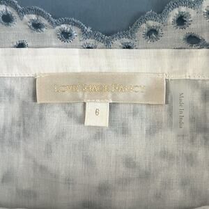 LoveShackFancy Melina Broderie Anglaise Blue Eyelet White Puff Sleeve Crop Top