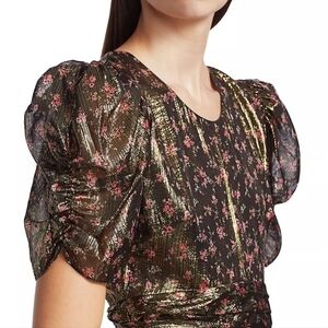 LoveShackFancy Mercy Lurex Metallic Silk Midnight Vine Mini Dress New Size 00