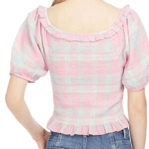 LoveShackFancy Molly Puff Sleeve Smocked Top Pink Plaid Size Small