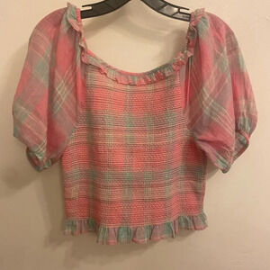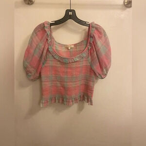 LoveShackFancy Molly Puff Sleeve Smocked Top Pink Plaid Size Small. Excellent pre-owned condition. Chest measures 13in approx.