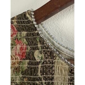 Coquette Aesthetic, Fairycore, Whimsygoth, Regencycore, Ethereal, Maximalist, Baroque Floral, Opulent, Designer, Luxury, Metallic, Lurex, Shimmer, Smocked, Puff Sleeve, Ruched, Three Quarter Sleeve, Mini Dress, Cocktail, Party Dress, Wedding Guest, Holiday, Formal, Semi-Formal, Glamorous, Romantic, Floral Print, Patchwork, Tulle, High-End, Bronx and Banco, Fit & Flare, Whimsical