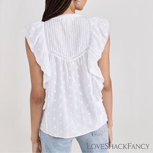 LoveShackFancy * NWT*Charlsie Sleeveless Embroidered Lace Flutter Top True White