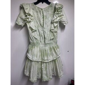 LoveShackFancy Natasha Light Green Lace Embroidered Ruffle Mini Dress Xs