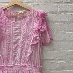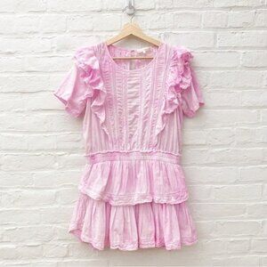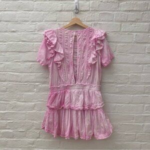 LoveShackFancy || Natasha Mini Dress Ruffle Swiss Dot Tie Dye Peony Pink XL