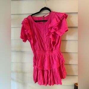 LoveShackFancy Natasha Mini in Watermelon Ice Pink Ruffle Cotton Dress L