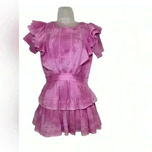 LoveShackFancy Natasha Pink Ruffle Tiered Mini Dress Size P (00)