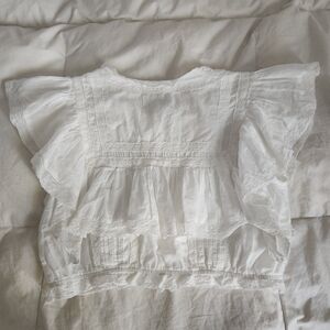 LoveShackFancy Nora Crop Top Lace Ruffle Sleeve White Size Petite P, no stains no smells no snags excellent preowned condition. See photos for measurements and verify fit .