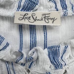 LoveShackFancy Nora Handkerchief Crop Top Blue Stripes Flutter Sleeve Size M
