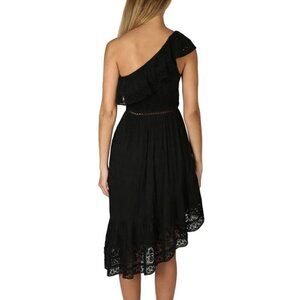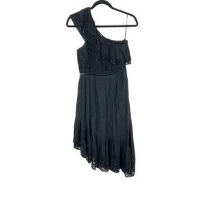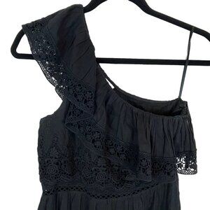 LoveShackFancy Pamela Asymmetric One Shoulder Ruffle Lace Dress Black Size S