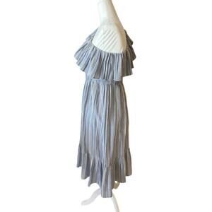 LoveShackFancy Pamela Ruffle One Shoulder Dress M Blue Silver