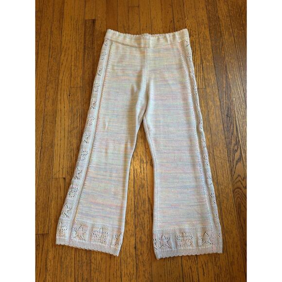 LoveShackFancy Pants Womens XL Pastel Knit Star Crochet Trim Wide Leg Lounge