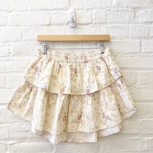 LoveShackFancy || Parasail Smocked Waist Tiered Mini Skirt Floral Ivory Medium