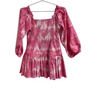 LoveShackFancy Pink Cotton Tie Dye Mini Shift Dress Size 00 - Beautiful Condition - Great Find!!