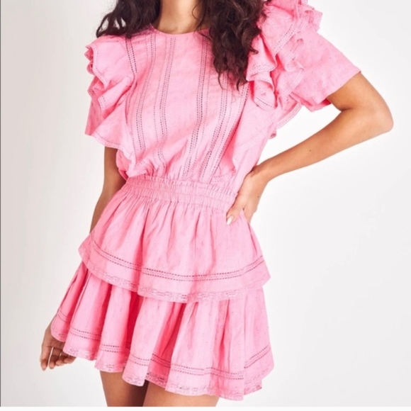 LoveShackFancy Natasha Hot Pink Lace Trim Mini Dress Size P (00)