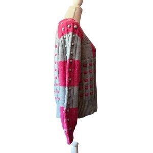 LoveShackFancy Pink and Gray Fancy Dot Sweater Size Medium
