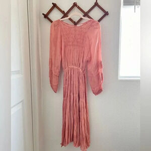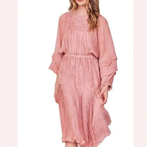 LoveShackFancy Pink Noelle Boho Smocked Midi Dress Petite