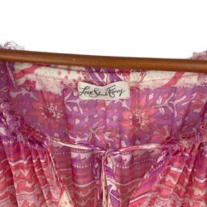 LoveShackFancy Pink Ruffle Tired Cinch Waist Ballon Sleeve Mini Silk Dress Sml