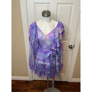 LoveShackFancy Purple Blue Watercolor Rain Drop Moxie Dress NWT $495, Size 8