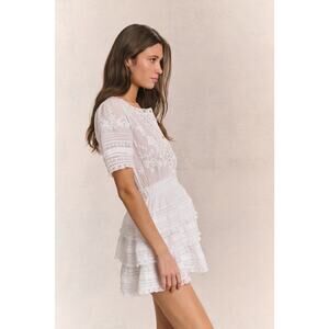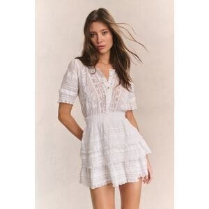 Our classic Quincy Dress is an instant staple in cotton with lofty floral sunflower embroidery and panels of inset embroidered lace. This mini frock has an inset lace yoke and functional pearlescent buttons at the center front. The sleeves—puffed at the cap, but tapered down the arm—feature bud embroidery panels and a threaded satin ribbon detail. Under a shirred elastic waistband, the skirt lets out into three pin-tucked flounces. Made from 100% Cotton.