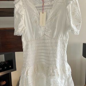 Brand New with Tags LoveShackFancy "Rena" Romantic Embroidered Ruffle Mini Dress.