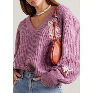 LoveShackFancy Ridge Embroidered Recycled Knitted Sweater Jumper Size XL Magenta