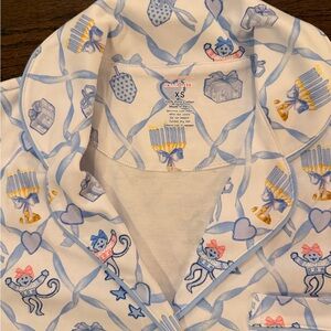 Get in the festive spirit with these Hanukkah-inspired shortie PJs from our LoveShackFancy × Roller Rabbit collab. Made with Roller Rabbit's signature satiny soft pima interlock cotton and adorned in our most magical print yet, these pajamas are a must for the holiday season.