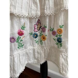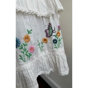 embroidered cotton, floral embroidery, lace trim, ruffle dress, tiered mini dress, pintuck detail, cottagecore, coquette, romantic style, feminine dress, boho chic, summer outfit, resort wear, garden party dress, sundress, ethereal, vintage inspired, soft cotton, designer dress, luxury boho, boutique style