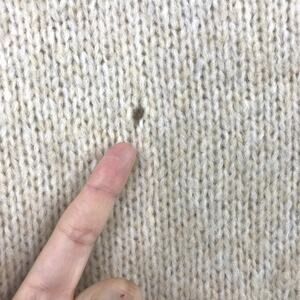 Condition: 0.25" hole on back of left shoulder, small snags on seam of right sleeve.