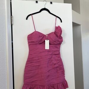 LoveShackFancy Rose Pink Ruched Cocktail Dress