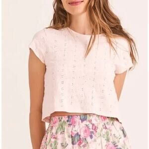LoveShackFancy Rubin Cropped Tee Shirt Eyelet Short Sleeve Powder Pink Size Smal