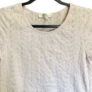 LoveShackFancy Rubin Cropped Tee Shirt Eyelet Short Sleeve Powder Pink Size Small