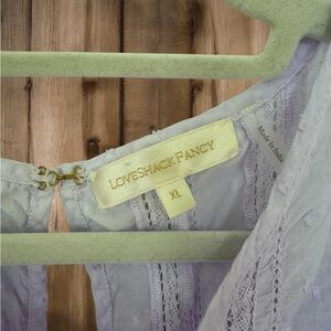 Charming lavender LoveShackFancy dress with ruffle dress. Sz xl but fits like 8/10. NWOT