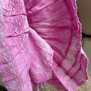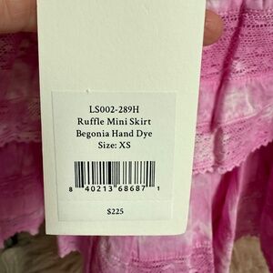 LoveShackFancy Ruffle Mini Skirt Pink Begonia Hand Dye 100% XS NWT Cotton Lace