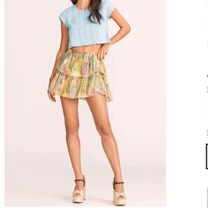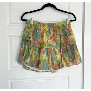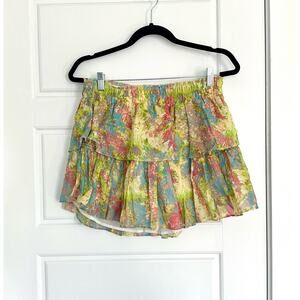 LoveShackFancy Ruffle Tiered Mini Skirt, Pastel Fields green/pink, Size Large