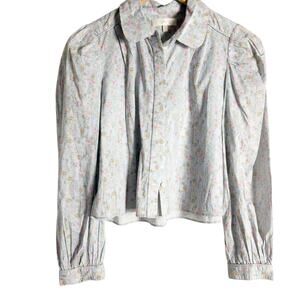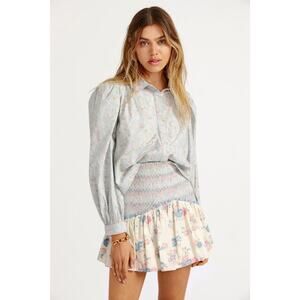 LoveShackFancy Sansom Anguilla Floral Print Two Piece Blouse Mini Skirt Set Sz S