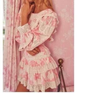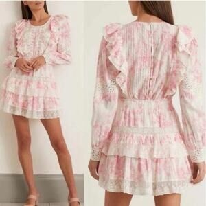 LoveShackFancy Santorini Dress in White & Pink Size XS