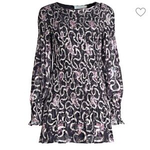LoveShackFancy Scarlett Chiffon Geometric Mini Dress Navy Cosmo Print Size M