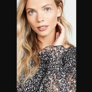 LoveShackFancy Scarlett Evening Sky Star Print Chiffon Ruched Mini Dress Size M