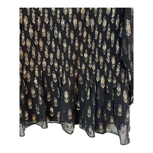 Loveshackfancy Scarlett navy mini dress. Navy silk with gold foil throughout. Sold at Resolve. New without tags. Size medium. A1