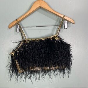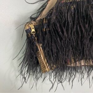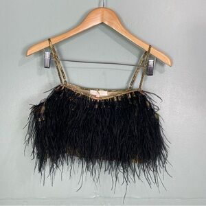 LoveShackFancy Set Dusty Crop Cami Midnight Ruby & Risha Feather Trim Mini Skirt