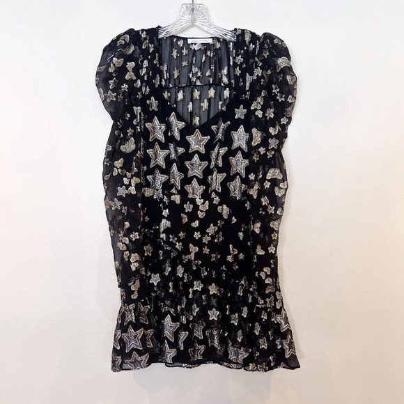 LoveShackFancy Caden Silk Blend Black Gold Star Butterfly Preppy Metallic Mini Dress 6