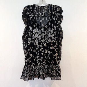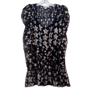 LoveShackFancy Silk Blend Black Gold Star Butterfly Preppy Metallic Mini Dress 6