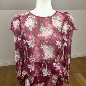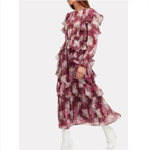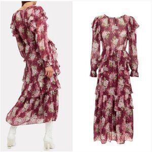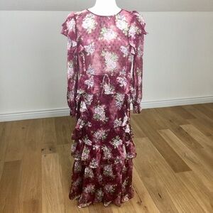 LoveShackFancy Silk Sonia Red/Pink Floral Maxi Dress Size Small